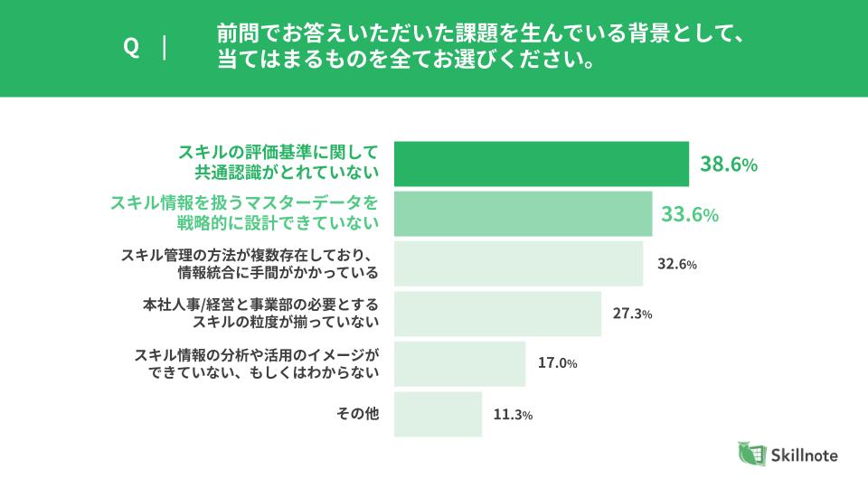 - 「スキルの評価基準に関して共通認識がとれていない(38.6%)」が最多