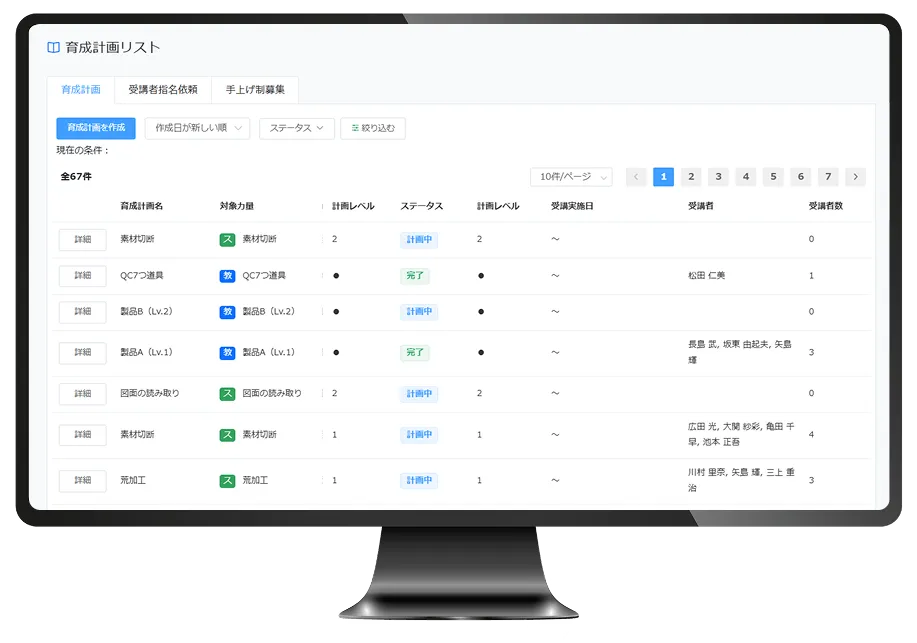 - 手上げ制の研修や外部セミナーなど、自発的な研修参加も一元管理