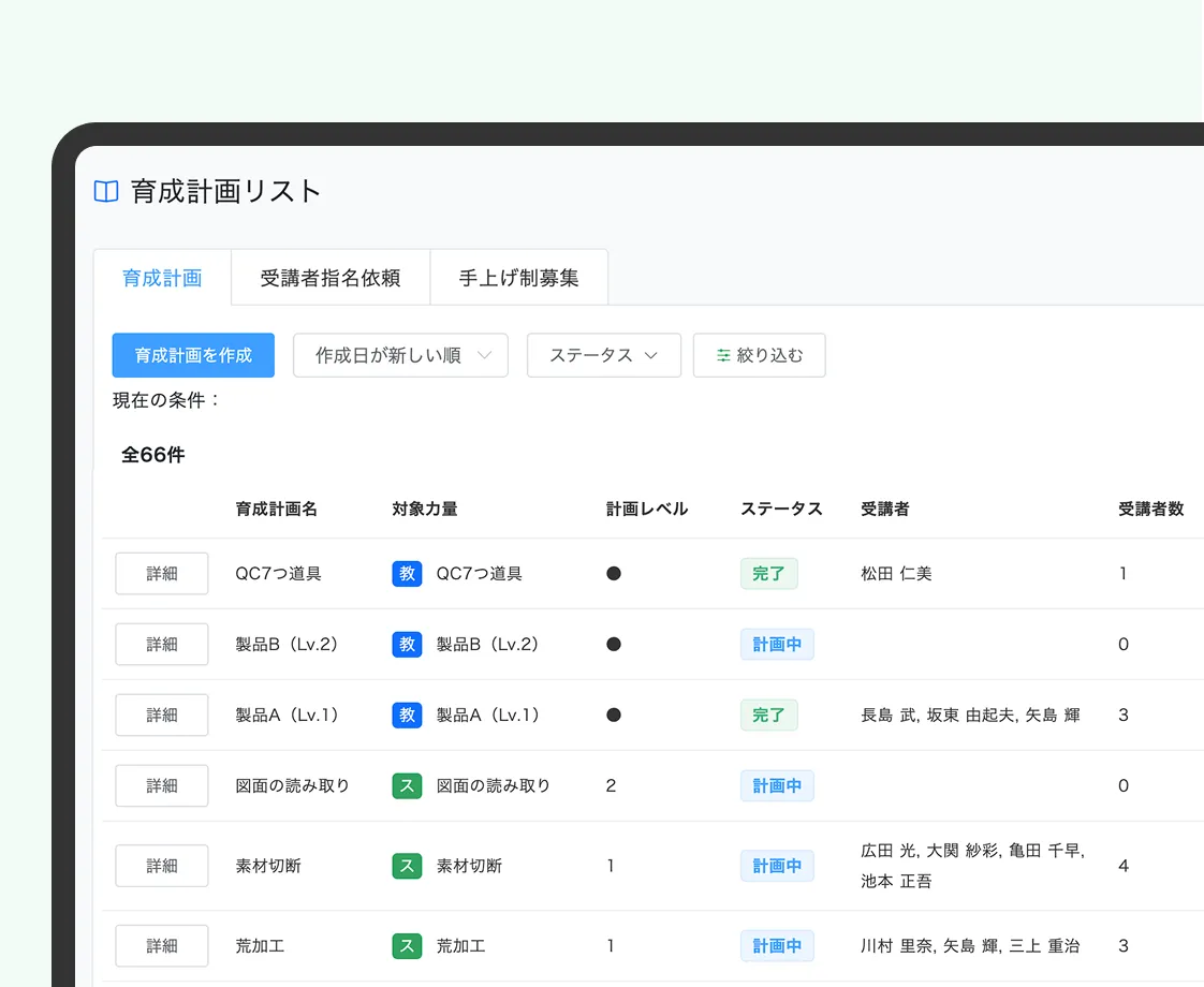 - スキルマップと連携して、過去の受講履歴を見ながら候補者を簡単に選定