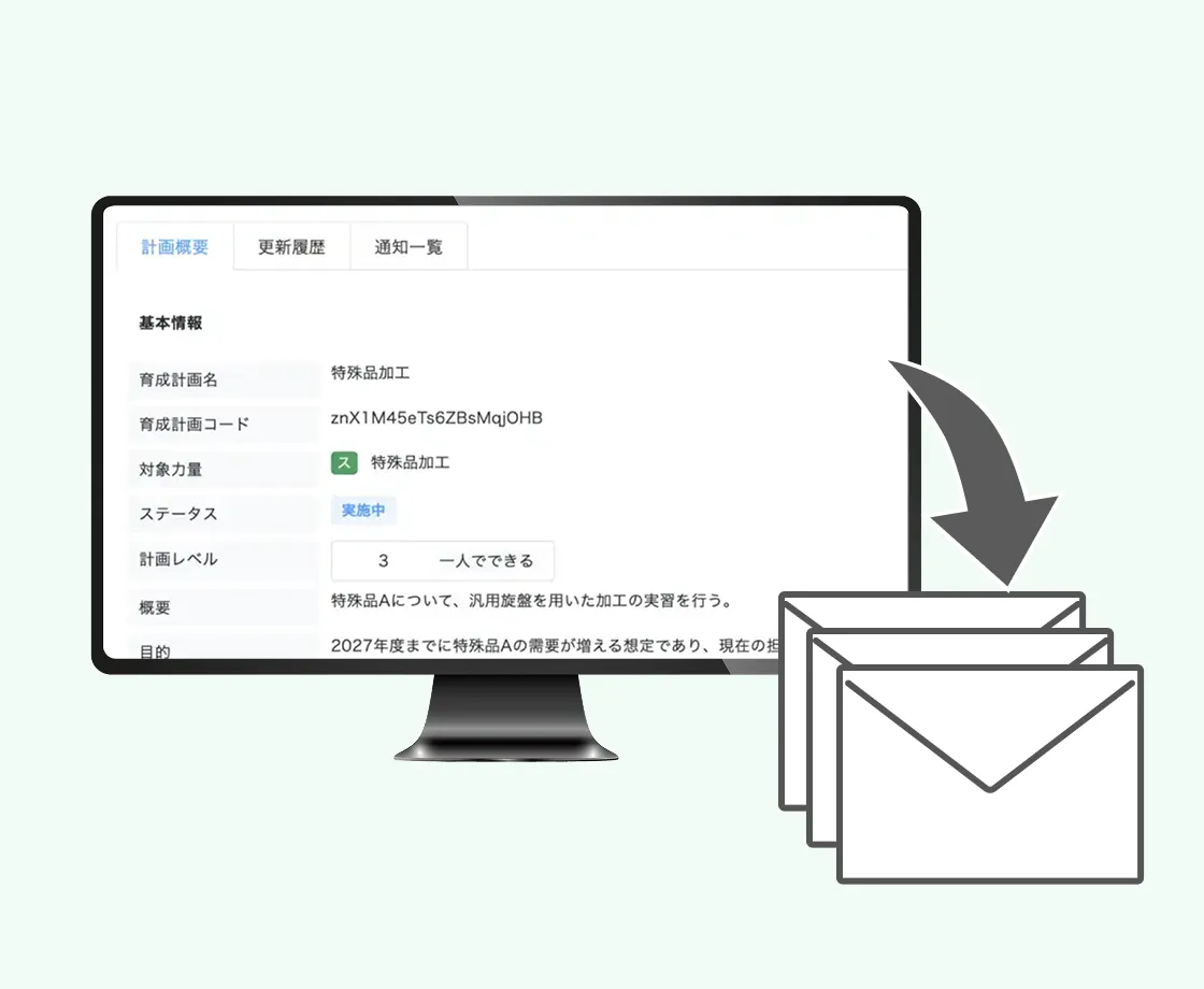 - 教育実施日や遅延アラートを自動でメール通知し、対応の抜け漏れを防止